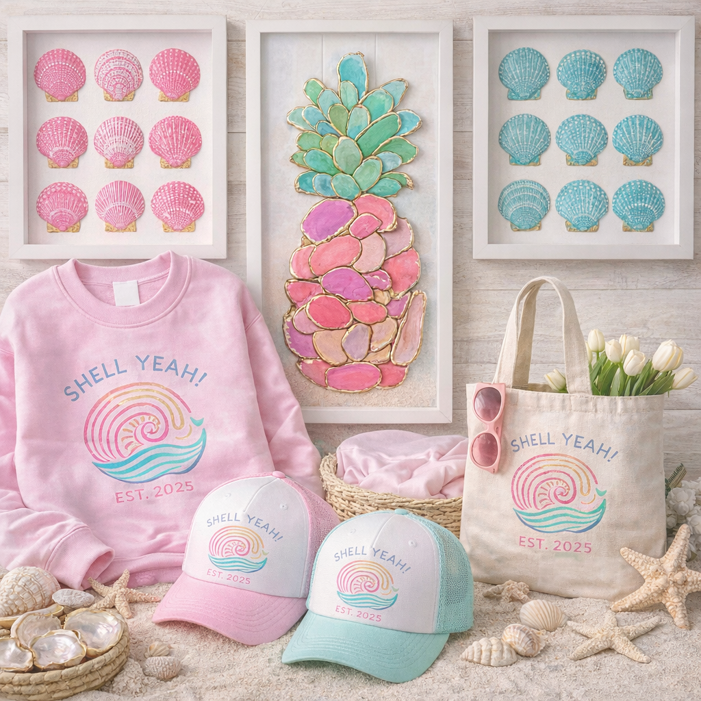 I created Shell Yeah! to reflect the coastal lifestyle I love and live every day. After leaving the corporate world, I set out to build a brand rooted in family, creativity, comfort, and intentional design.